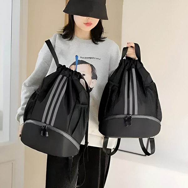 A nagy, húzózsinórral ellátott rekesz tökéletes a tornaruhák, cipők, törölközők és egy vizes palack tárolására. Külön helyet biztosít mindannak, amire szüksége van egy hatékony edzéshez. Nincs többé kotorászás a táskádban – mindennek megvan a helye.