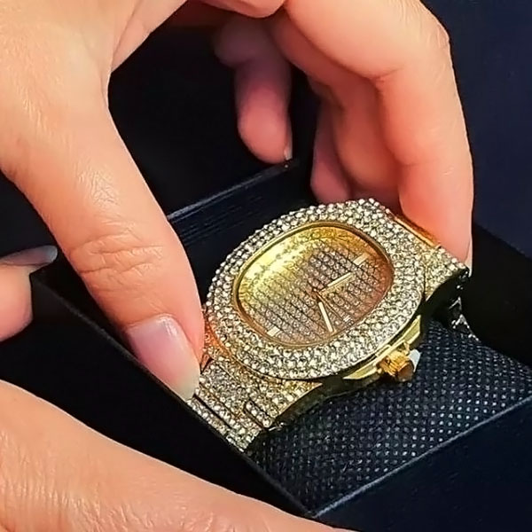Több ezer csillogó kristály teszi ezt az órát figyelemfelkeltővé. Ez nem csak egy időmérő – ez a luxus és az elegancia merész megnyilvánulása.